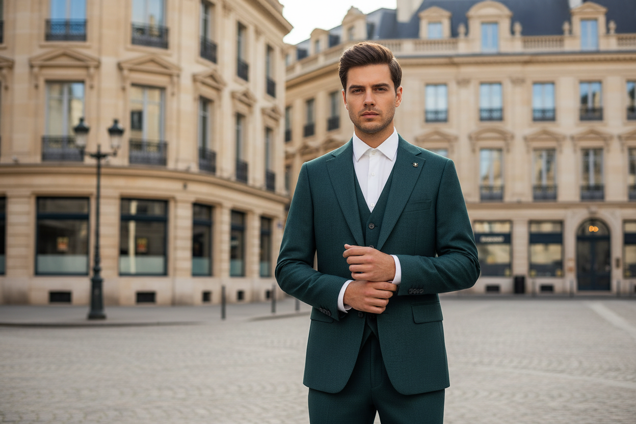 Marcello Driedelig Pak olijfgroen